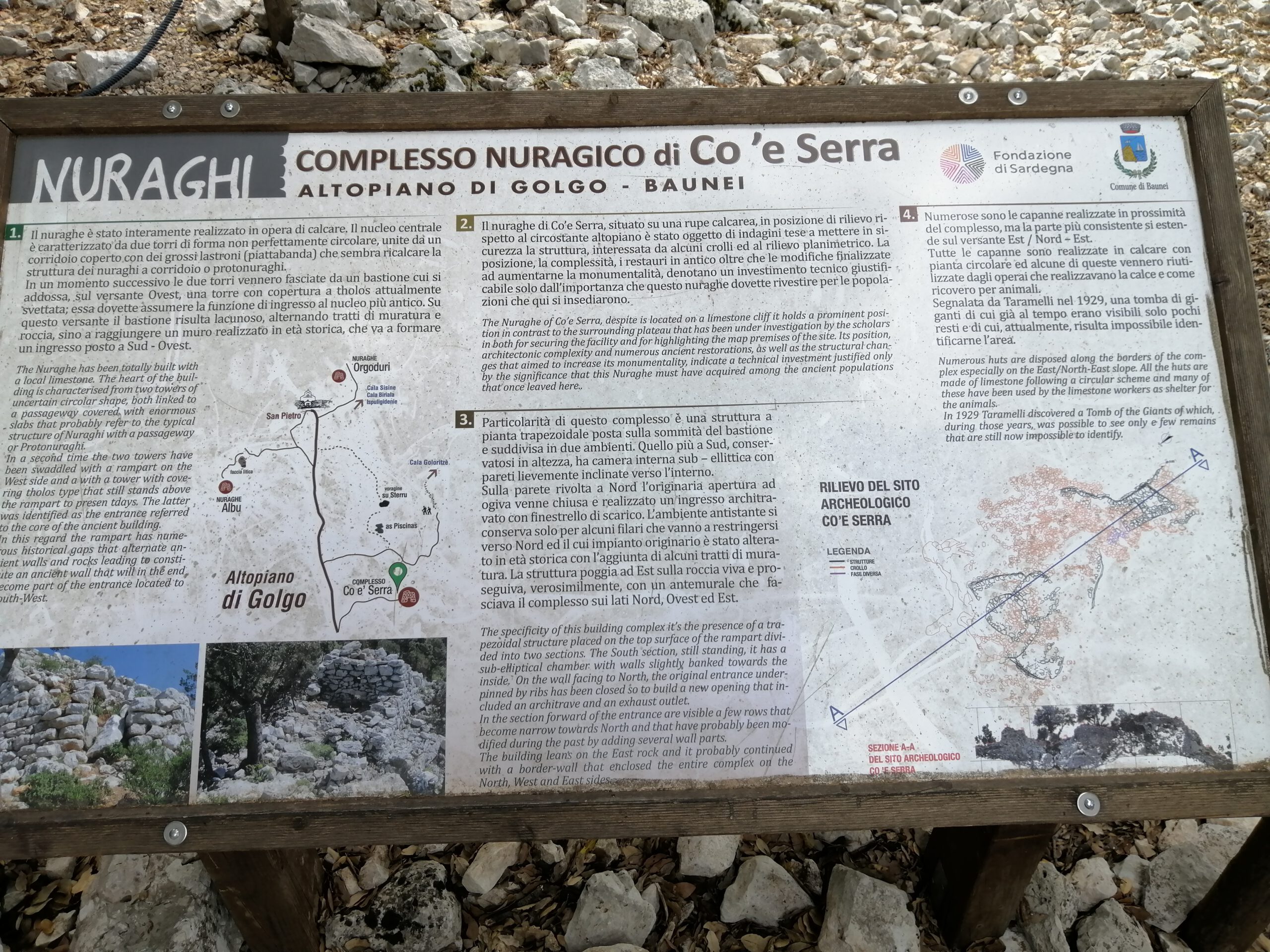 Leicht übersehbares Schild, deshalb nicht einfach zu finden. Hinter Tertenia, an der Grenze zur Quirra, schon zu Villaputzu gehörig. Hier finden ab und zu archäologische Bauarbeiten nach weiteren dazugehörigen Stätten statt.