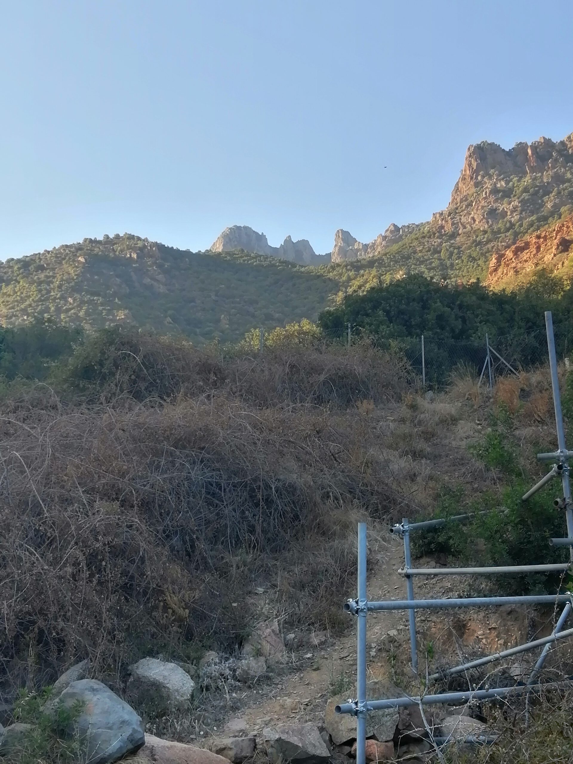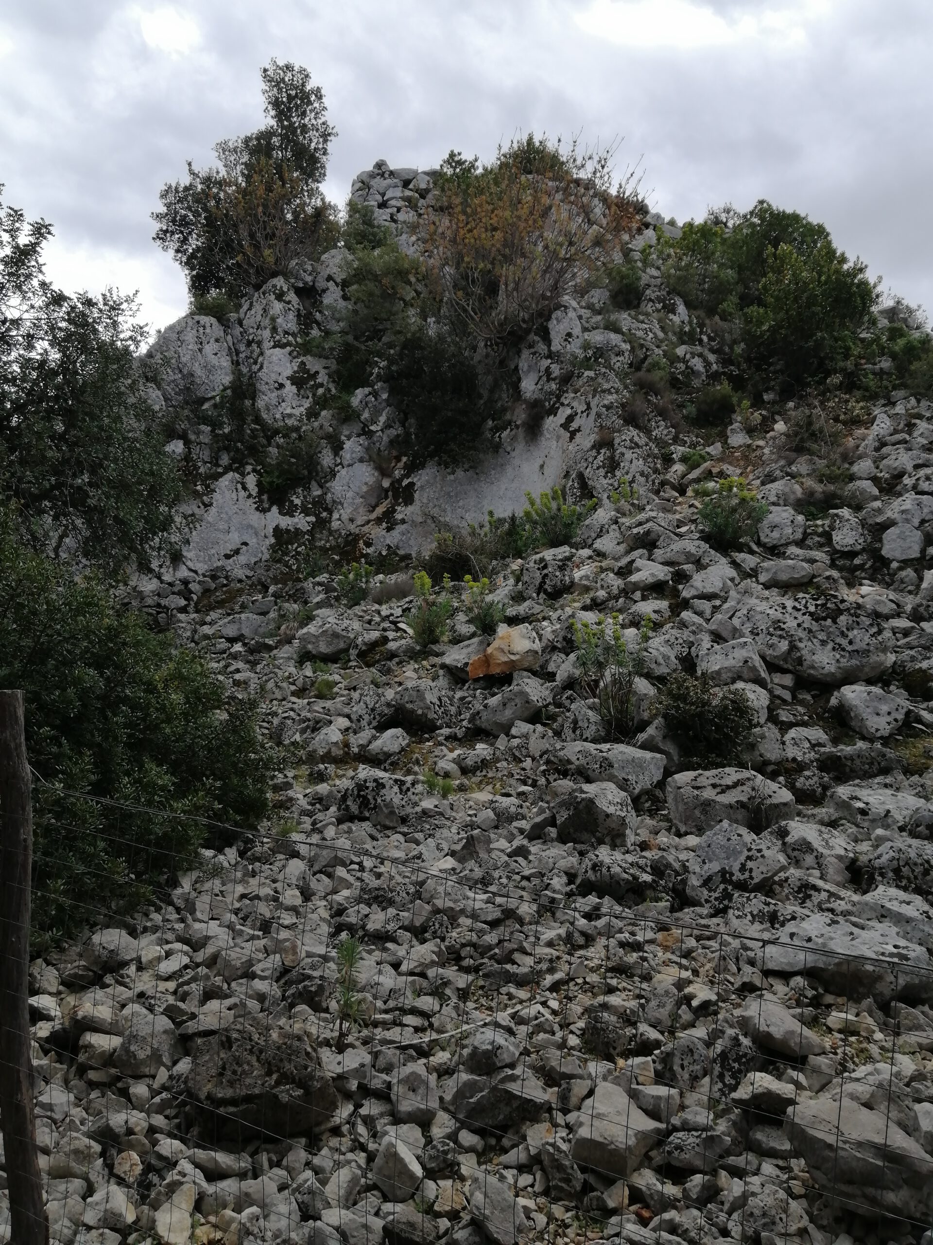 Man parkt ca. 800 m außerhalb und geht durch dieses Wäldchen am Berghang.