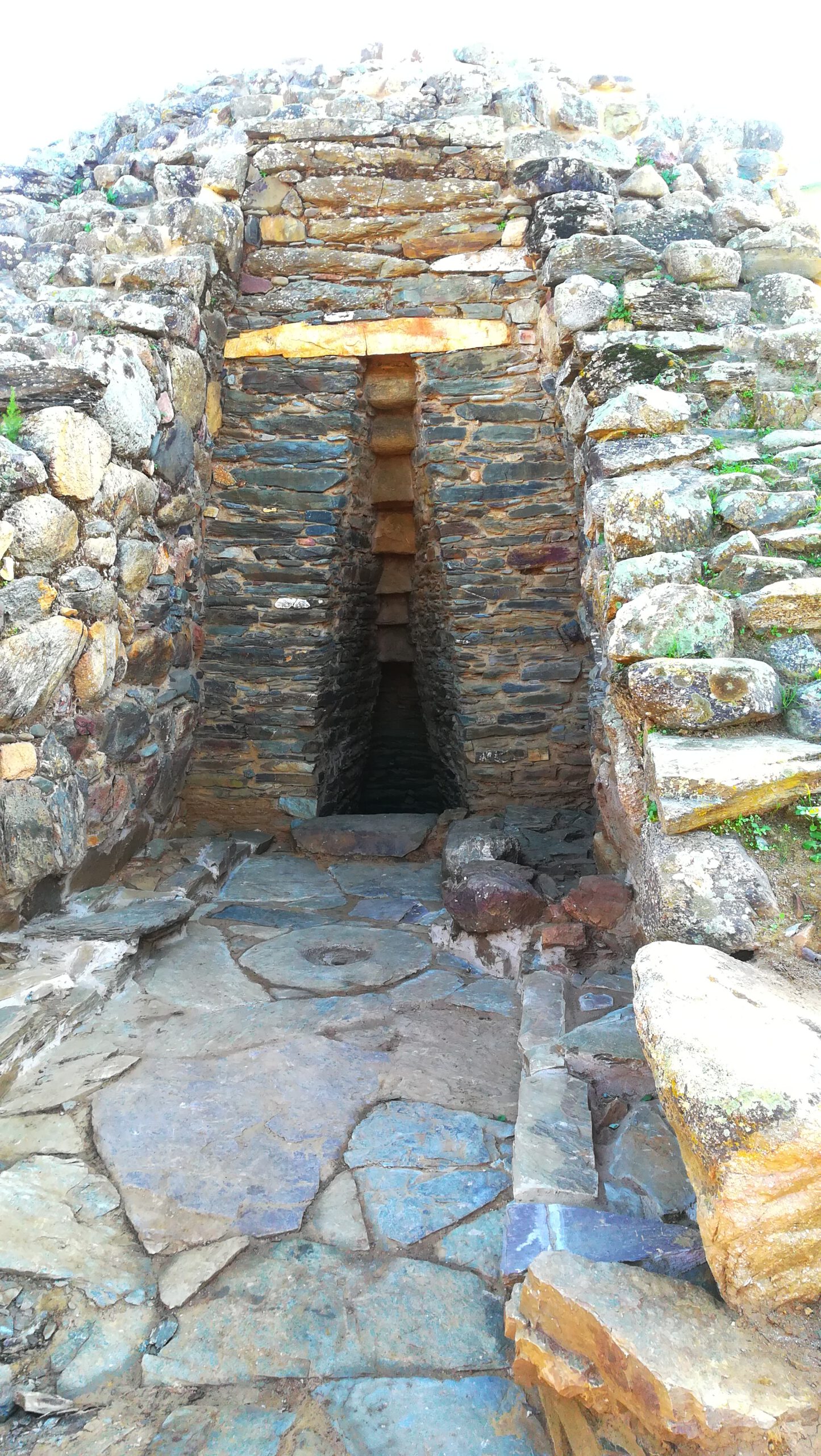Hier wurde in einem anderen Stil gebaut als z.B. in Tortoli. Nord- und Südsardinien haben unterschiedliche tomben/Grab-Stile, und obwohl dies Südsardinien ist, ist hier der nordische Stil vertreten. Rechtes Bild: die Exedra, ein großes Stein-Halbrund als Ritualort, Vorbereitungsplatz und Energieformer.
